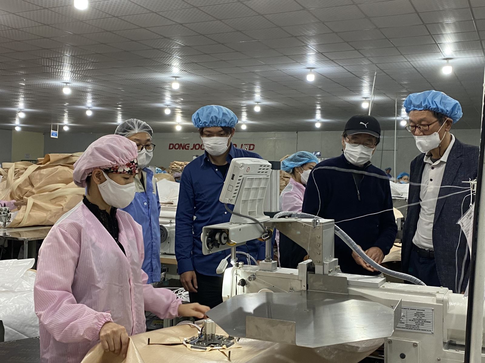 Dong Joo Vina đón tiếp khách hàng K-Corp sang thăm quan và làm việc hồi tháng 10 năm 2022 21/11/2022 Khách hàng tham quan bộ phận QC kiểm hàng, sử dụng máy cắt chỉ trong quá trình kiểm soát hàng hóa. Khách hàng quan sát máy may xả - dập kẹo tự động Khách hàng quan sát và theo dõi quá trình may của máy may quai tự động Other news Dong Joo Vina tổ chức 20 – 10 cho cán bộ nhân viên công ty Dong Joo Vina tiếp đón khách hàng đến tham quan và đào tạo... Dong Joo Vina tổ chức đào tạo, tập huấn Phòng Cháy chữa cháy... Phát quà tết Âm lịch cho toàn bộ CBCNV nhân dịp Xuân Nhâm Dần... Đón tiếp khách hàng sang tham quan và làm việc tại Dong Joo...